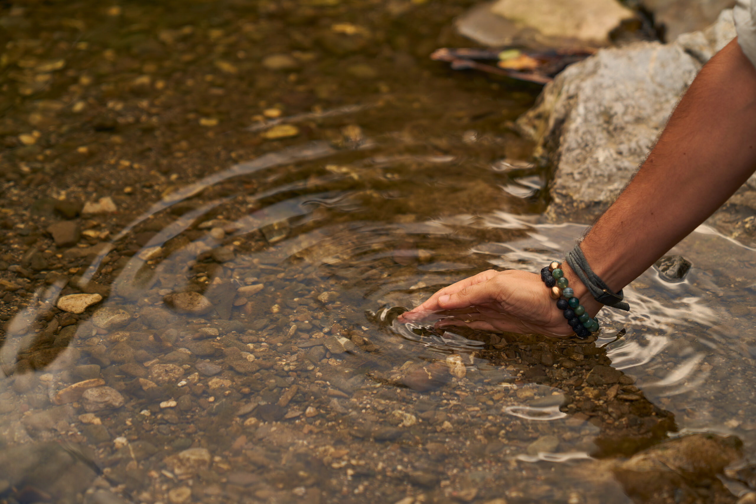 Meine Mission ist es, das Dark Mala zu verbreiten und anderen Menschen dabei zu helfen, ihren Alltagsstress zu reduzieren. Eine Atemmeditation mit dem Dark Mala kann folgendermaßen aussehen: Du nimmst es vom Handgelenk, hältst es in der Hand, schließt die Augen, atmest tief ein und aus und zählst dabei bis 18. Dein Ziel ist es, konzentriert zu bleiben und nicht die Übersicht zu verlieren. Am Ende erreichst du die Guru-Perle, die sich durch ihre Größe und Haptik von den anderen Perlen unterscheidet. Selbst mit geschlossenen Augen wirst du merken, ob du dich verzählt hast oder nicht.
