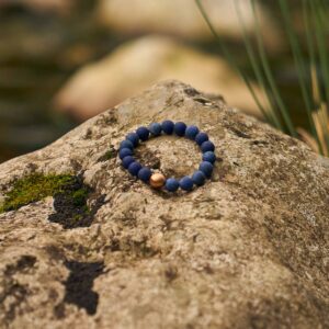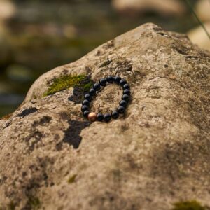 Dark Malas bestehen aus echtem Stein, einer Metallperle und einem gummierten Band.